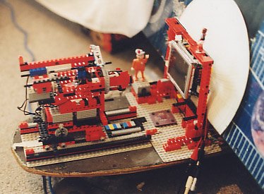 R^2+C=REALITY ENGINE. Running inconjunction with the VJ-POD systems is this Lego robotic construction made using standard Lego blocks and motors. Retro fitted is an LCD screen and camera. LCD is slung from a stand. Camera turret sits on a carriage that runs along cogged tracks. Hacked standard telephone anti-twist couplings allow camera turret to be rotated infinitely whilst still delivering signal unfettered. All motor control is interfaced via the DACTA Control Lab PC software which utilities a modular LOGO like OO programing language. The scripted control allows repeatable and precise control of the cameras (X, Y, Z) axis relative to the monitor. The Reality Engine is a physical manifestation of the video feedback and Mandelbrot equation Z^2+C=Z. Check out REALITY ENGINE visual output. |