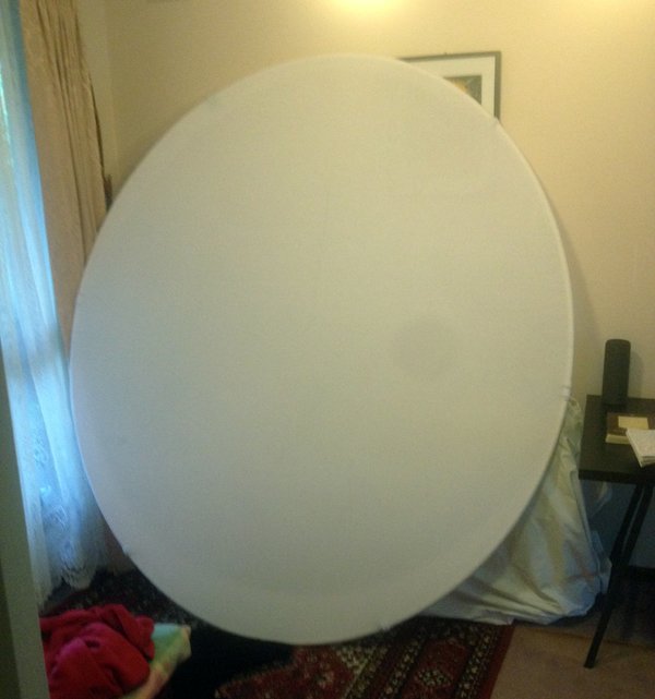 TEST A custom 3.5mtr diameter dual stretch lycra screen sown together (by my neighbour Nimpha) to slip over a elliptical PVC pipe frame held together by ring clamps for quick release and assembly. Photo by Adem J |