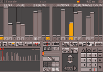 VJ-POD A/B (aka R2D1 & R2D2) After 7 years of gorilla experimentation with Amiga computers to generate animation loops, creating feedback using video cameras and lighting/laser operation for use in live performance environments; Emerged a drive to tightly synchronize those visual mediums to audio in a multifaceted, adaptable and synaesthetic fashion. Enter VJ-POD A/B DIY garage project, or more affectionately known as R2D1 & R2D2. The construction and components consist of eight Amiga computers, four video Genlocks, two video cameras, two VHS players, Serial/Parallel/VGA switch boxes, Infrared and RF transmitters/receivers. All hardware is velcro set into two standard hospital linen trolleys retrofitted with several custom built adjustable triangular shelves. Two 1084s monitors, four mice and keyboards straddle each unit via custom designed frames which are refashioned from the relics an old rusty trailer canopy frame. Some 140 & 90 cable patch points in each POD respectively allow them both to work in unison or tandem. The master MIDI pulse that triggers all computer playback of all relevant multi-media derives from one CD32 computer running Octamed game audio Mod tracker software. The two A2000, A1200, A500 and remaining CD32 computers output industry MIDI, DMX, SMTE, TC and TONE control protocols in a way that allows recording and repeatable performance control of animation, video, audio and lighting/laser. PODS by MMM c1997/98. Mandala < Adem Jaffers > Shelve, frame, POD-tek and robotic design/build